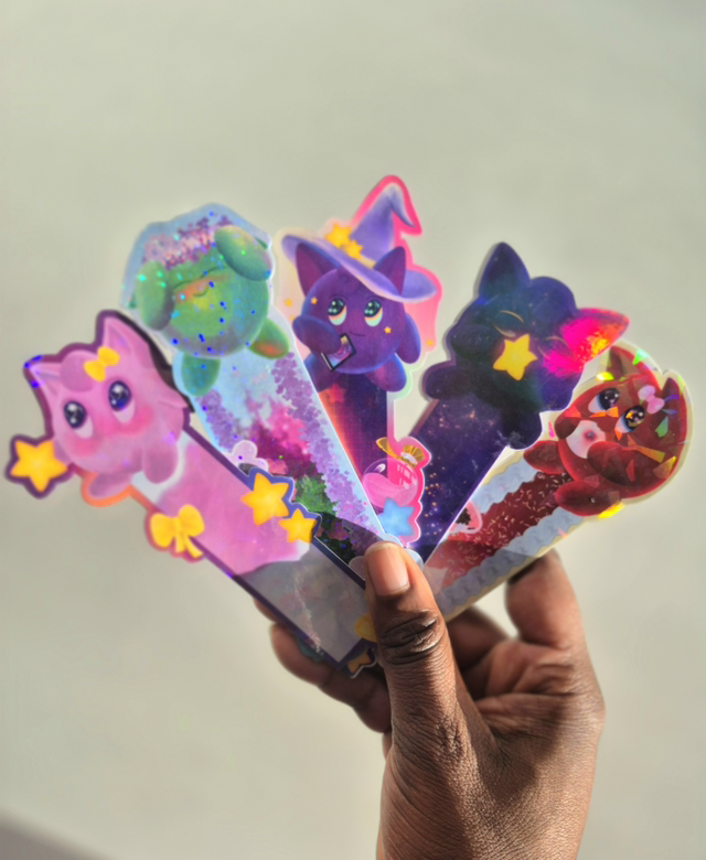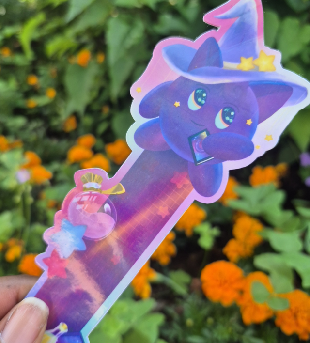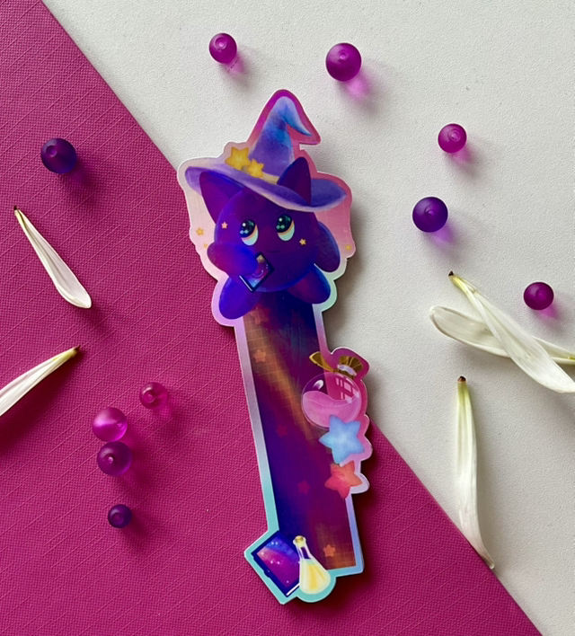 Marque-page collection « bouboules fluffy » la petite sorcière taille 14 cm avec fini holographique