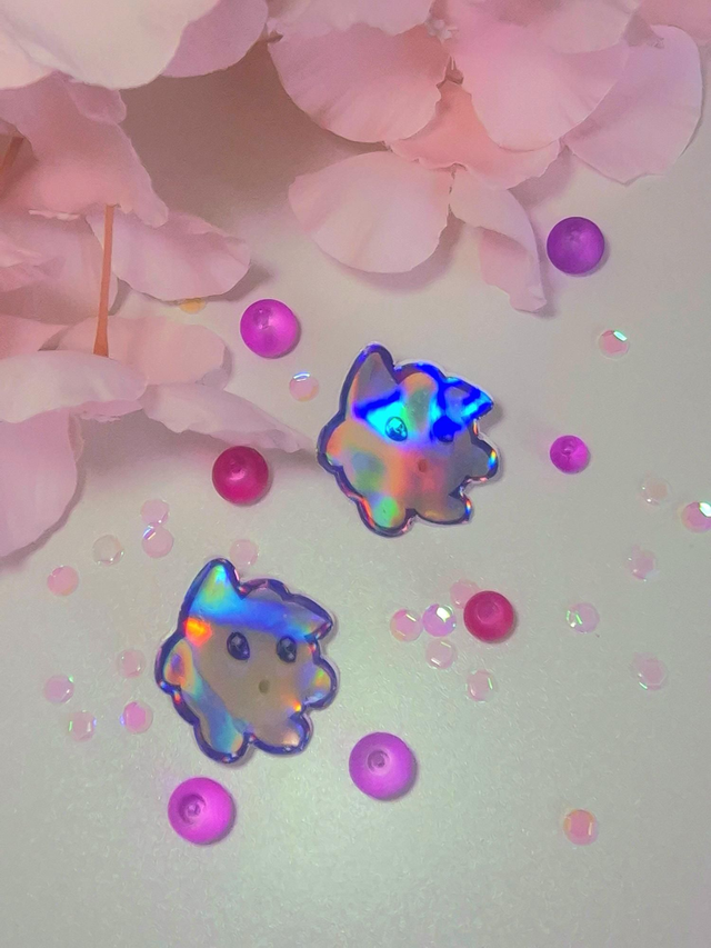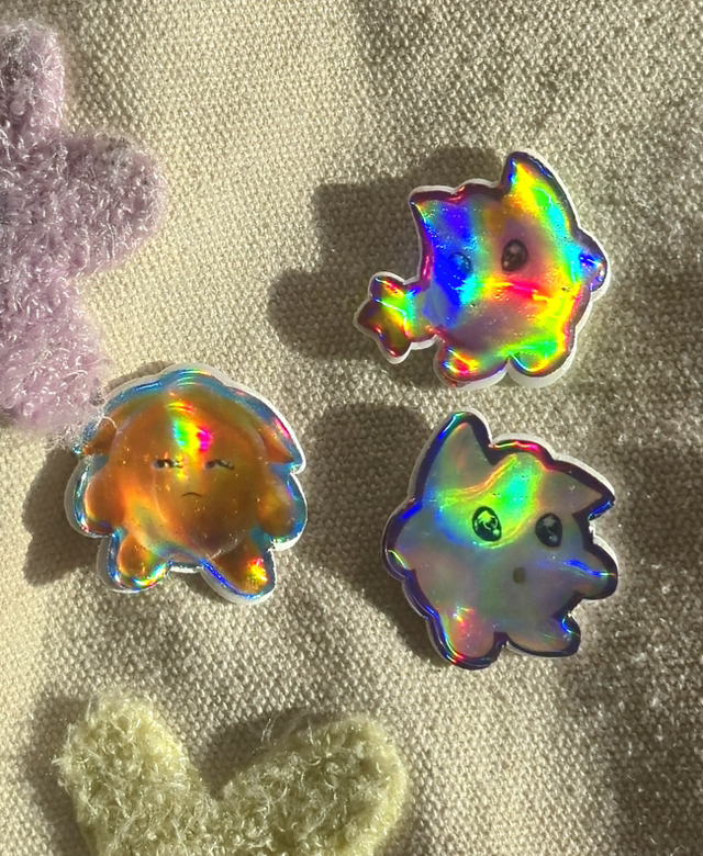Pin holographique en plastique avec fini en résine "bouboule fluffy" Perle Taille 3 cm