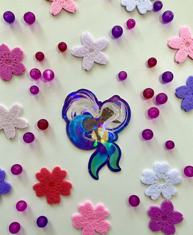 Sticker « Eina’s Bubble mini moi » Eina petite sirène taille : 8cm fini holographique effet verre brisé