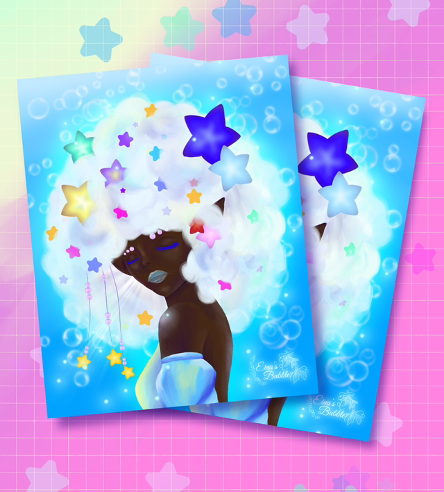 illustration collection « Afro fantasy » papier photo satiné disponible en petit format L 13,5cm H 17cm, format moyen L 21cm H 26,6cm et grand format L 29,7cm H 37,5cm
